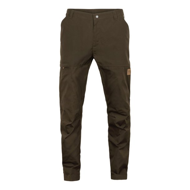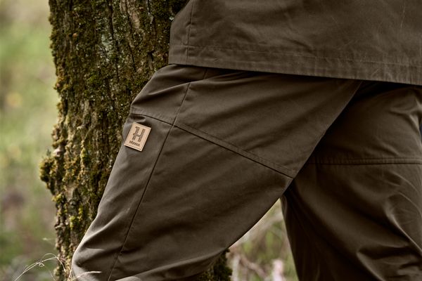 Härkila Fjell Ace Bukser er slidstærke jagtbukser og outdoorbukser til herrer, udviklet til aktivt friluftsliv, jagt og lange dage i naturen, hvor bevægelsesfrihed, holdbarhed og komfort er afgørende.Fjell Ace bukserne er fremstillet i kraftigt WaxTex-kanvas - en voksbehandlet blanding af polyester og bomuld - som giver en naturlig vind- og vandafvisende overflade. Materialet er særligt velegnet til jagt i tæt bevoksning, ujævnt terræn og omskifteligt vejr, hvor bukserne udsættes for hårdt slid.Den klassiske pasform kombineret med elastik bagpå i linningen og formsyede knæ sikrer god bevægelse