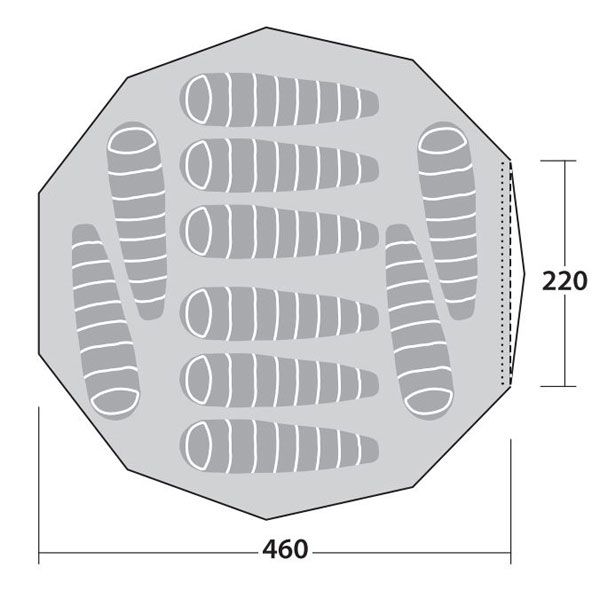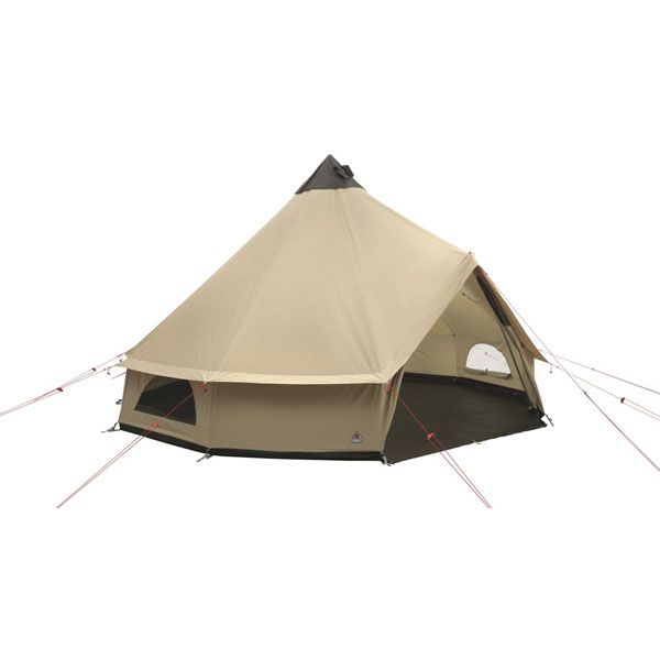 Det rummelige Robens Klondike Grande telt, der er hurtigt at sætte op, giver super komfortable forhold for op til ti personer. Den lodrette dør sikrer nem adgang til teltet – særligt i dårligt vejr.Beskyttende udhæng i hele teltets omkreds beskytter døre og sider mod regnvand, der løber ned. Den aftagelige bund har en lynlås, som går ind til midterstangen, hvilket gør, at den kan rulles væk, så der fremkommer et sikkert område til en eventuel teltovn eller et sted at stille mudrede støvler. Det klokkeformede telt er udstyret med den smarte Internal Apex Vent