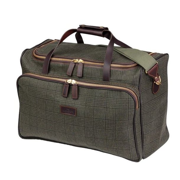 Laksen Willow Weekender Bag er en eksklusiv og rummelig weekendtaske i klassisk tweed og læder - et oplagt valg som rejsetaske til jagtrejser, weekendture og outdoor ophold, hvor stil, kvalitet og funktionalitet går hånd i hånd.Tweed tasken er fremstillet i 100% skotsk uld med det karakteristiske Willow tweed-mønster, der giver et klassisk og tidløst udtryk. Kombinationen af uld, italiensk læder og solide messingdetaljer sikrer en robust og holdbar taske, der er skabt til mange års brug - både i hverdagen og på rejser.Med en volumen på 49,5 liter har du god plads til tøj, udstyr og tilbehør. T